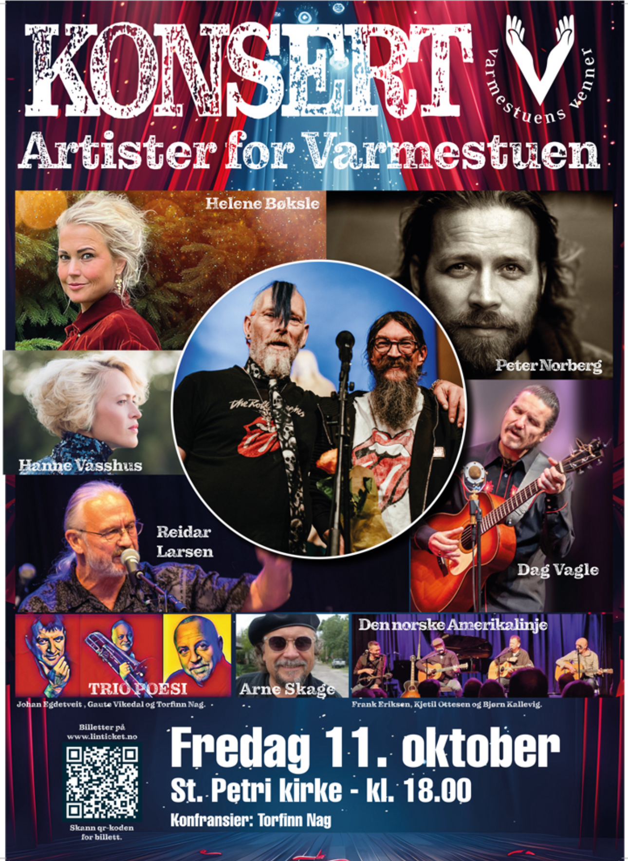 flere konserter i Johanneskirken og Madlamark kirke. Disse konsertene samler fullt hus og gir viktige inntek- ter til driften av Varmestuen. Kjente artister som Reidar Larsen, Rita Eriksen, Espen Hana, Hanne Vasshus, Helene Bøksle, Tønes, Dag Vagle og skuespilleren Torfinn Nag har vært gjengangere og bidratt til å gjøre konsertene